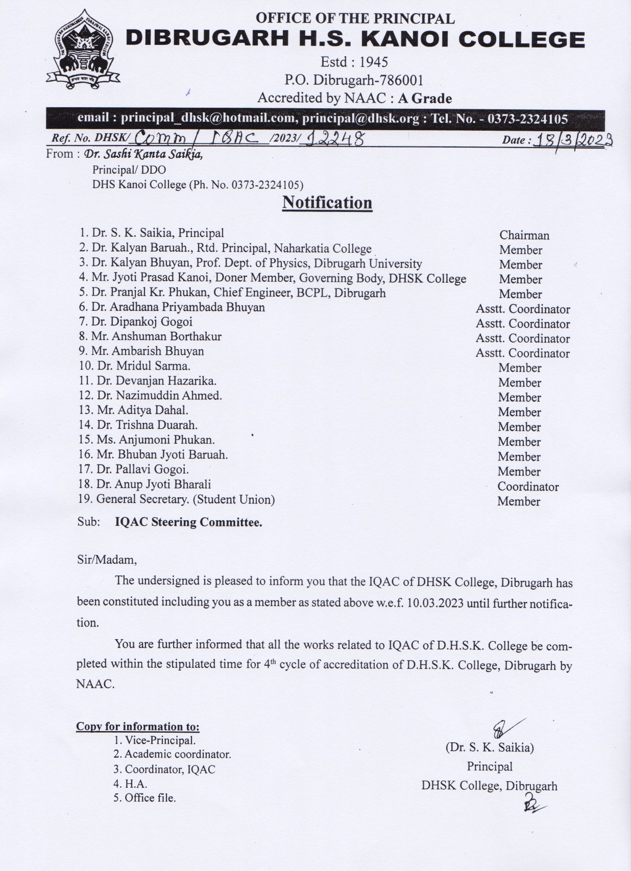 In pursuance of the National Action Plan of the National Assessment and Accreditation Council (NAAC), Bangalore, for performance evaluation, assessment and accreditation and quality upgradation of institutions of higher education, the NAAC proposes that every accredited institute will establish an Internal Quality Assurance Cell (IQAC) as a post-accreditation quality sustenance measure. Since quality enhancement is a continuous process, the IQAC will become a part of the system of an institution and work towards realizing the goals of quality enhancement and sustenance. The prime task of the IQAC is to develop a system for conscious, consistent and catalytic improvement in the performance of institutions. The IQAC will make a significant and meaningful contribution in the post-accreditation phase of institutions. During the post-accreditation period, the IQAC will channelize the efforts and measures of an institution towards academic excellence. The IQAC of our college was established on 25/01/2005. |